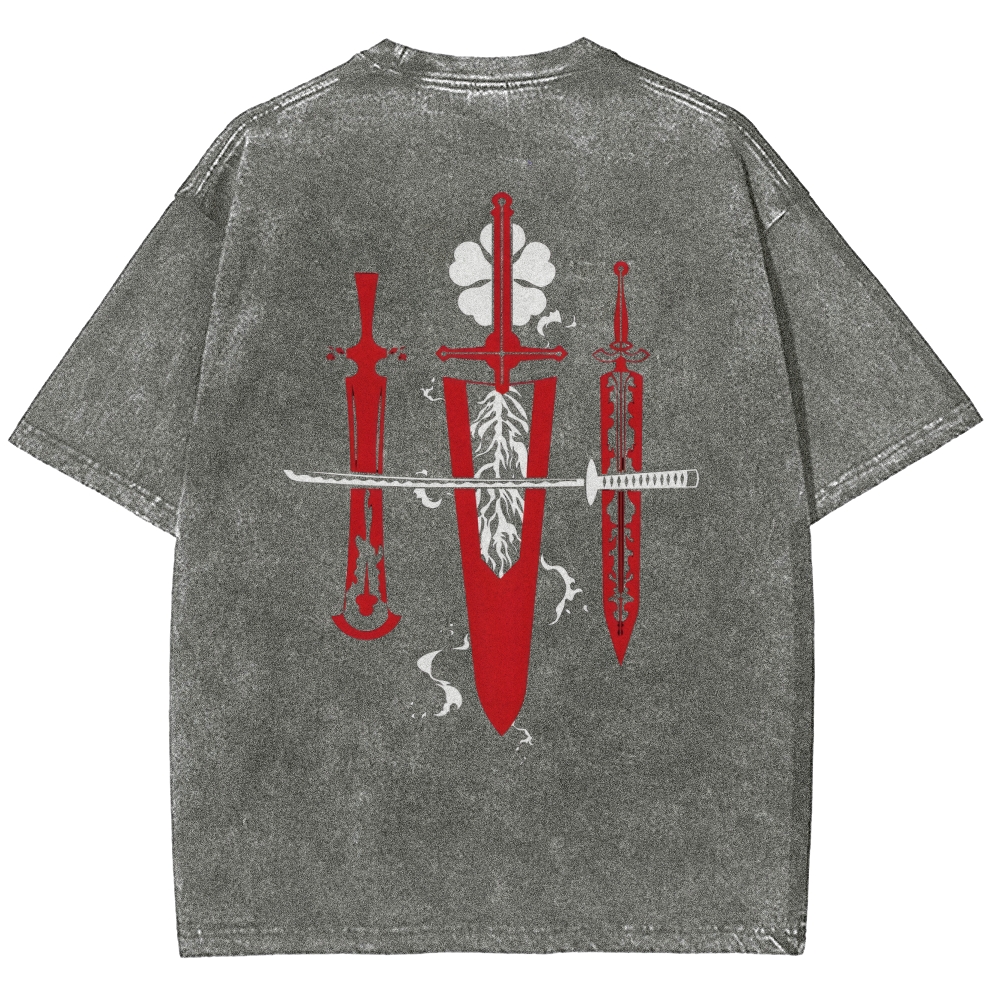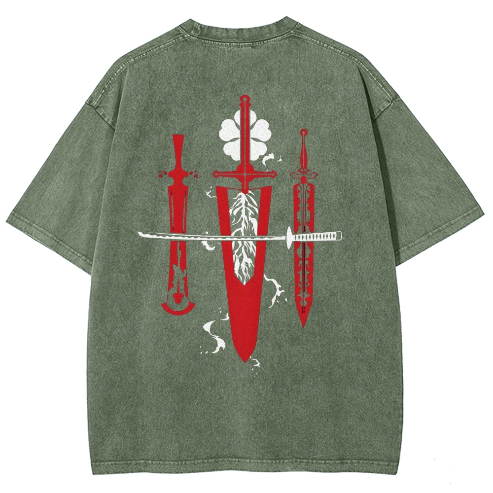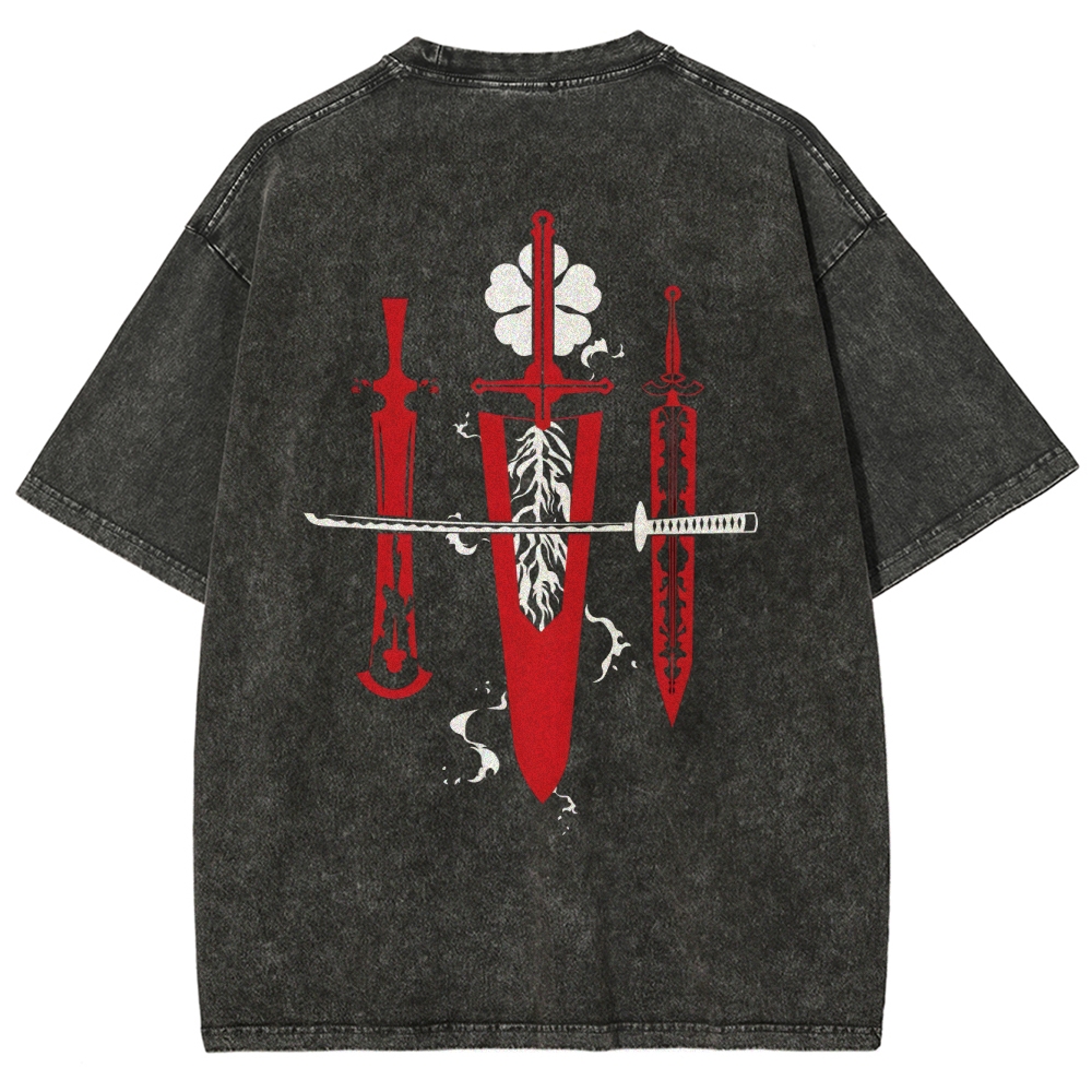 Black Clover Sword Streetwear Washed T-Shirt