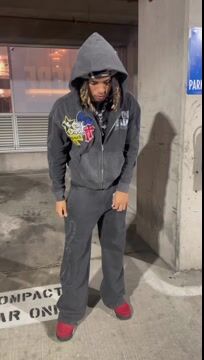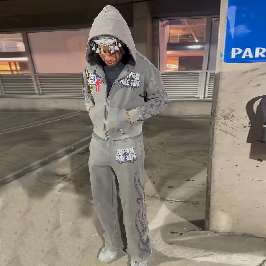 Vintage distressed zipper sweatshirt suit
