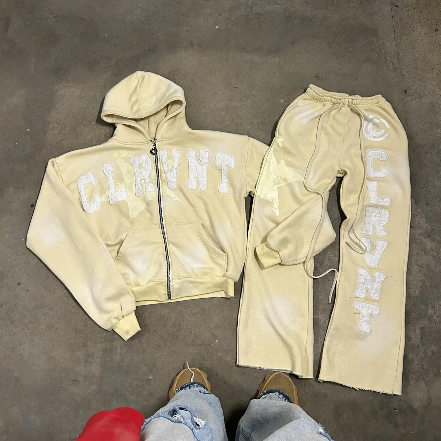 Vintage Gradient Applique Zip-Up Hoodie Two-Piece Set
