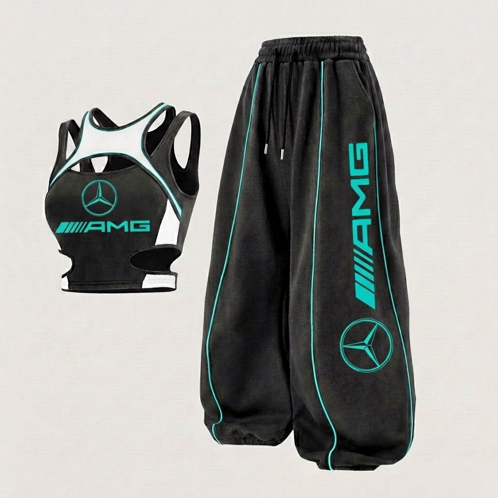 Women's Fashion Motorbike Culture Print Vest + Sports Hoodie Pants Set