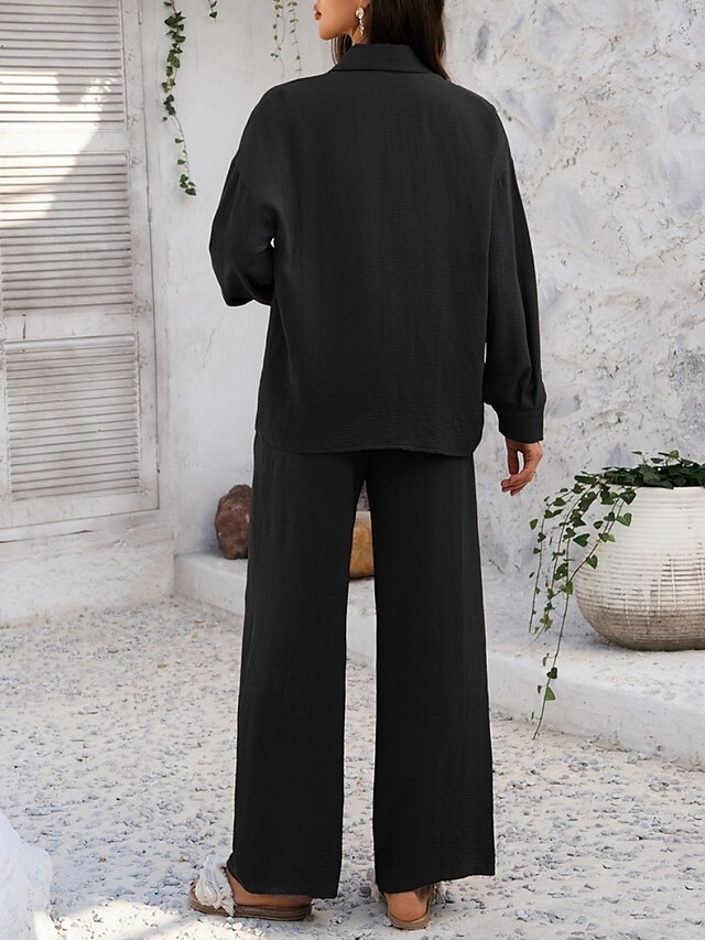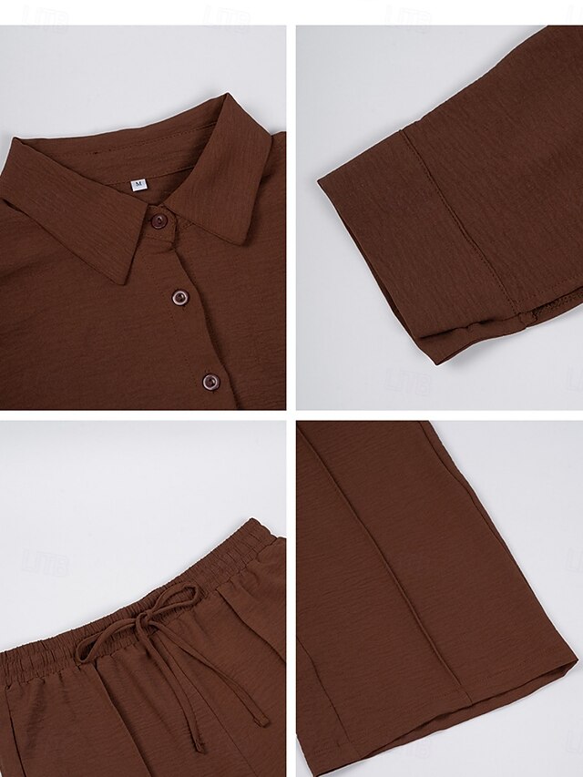 💓💓Women's Fashion Streetwear Daily Shirt Long Sleeve Shirt Collar Plain Casual Daily Black Brown Green Summer Regular Fit