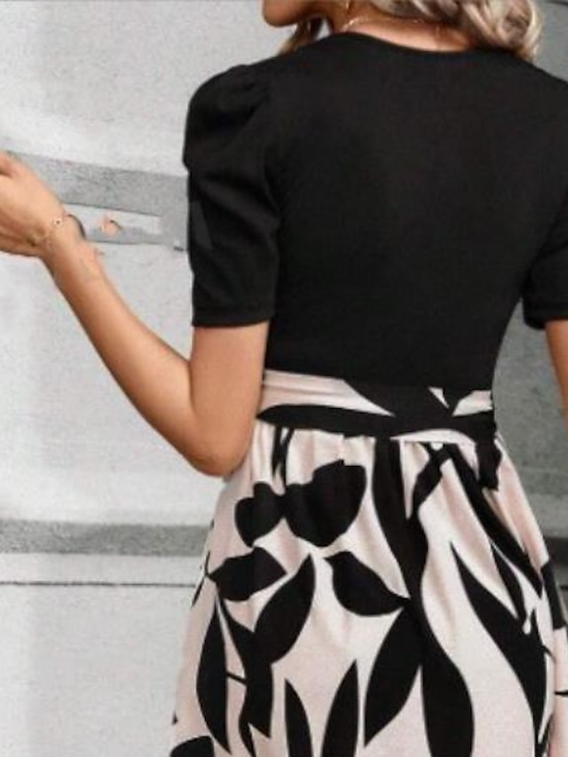 💃💕Women's Maxi Dress A Line Dress Elegant Stylish Work Daily Regular Fit Color Block Short Sleeve Crew Neck Black Summer