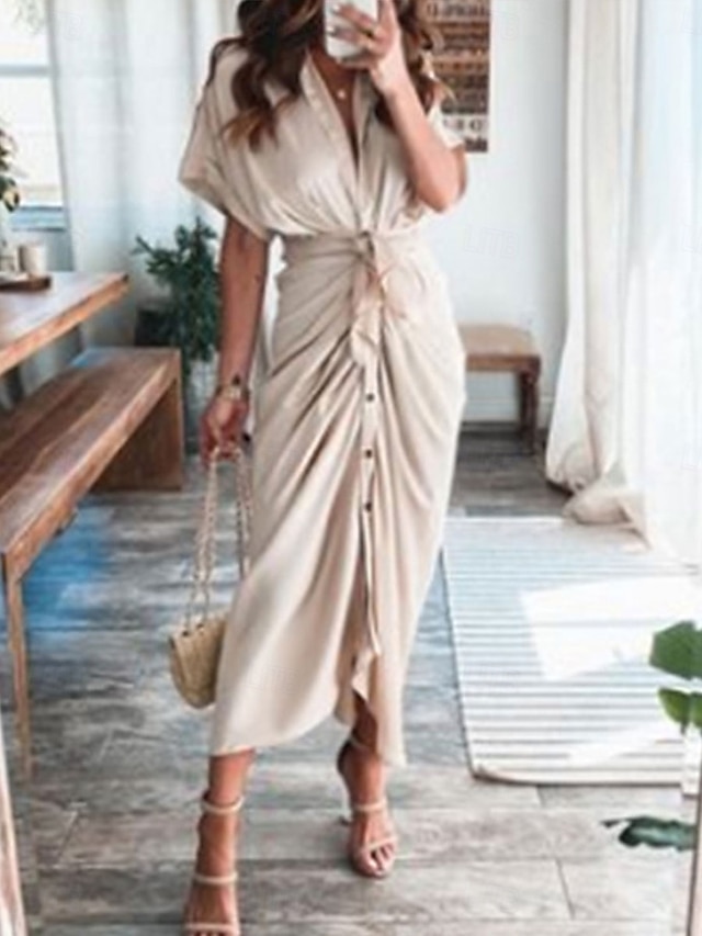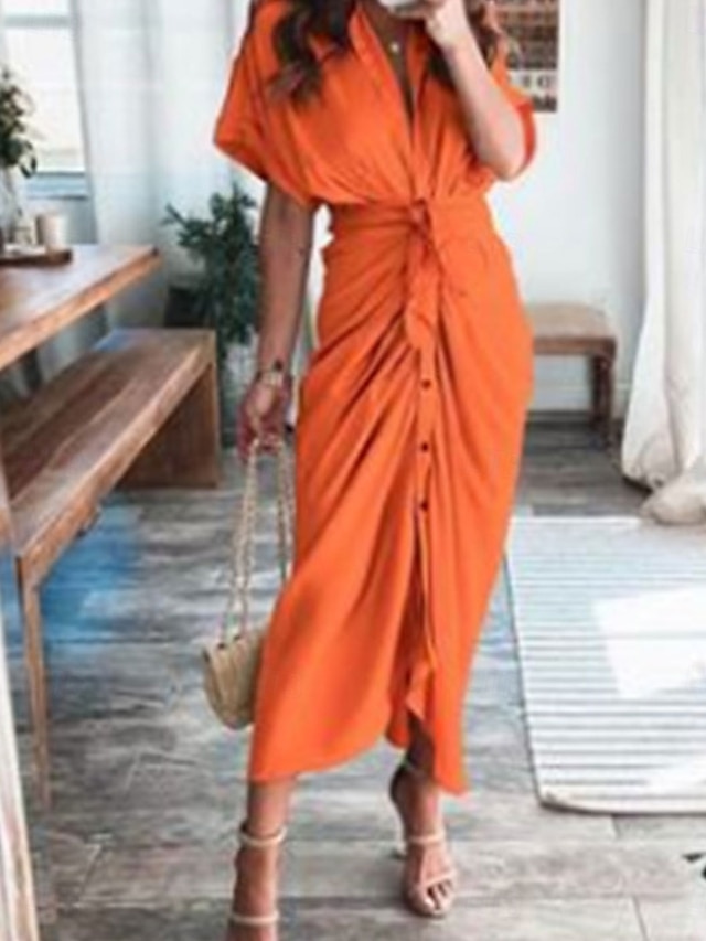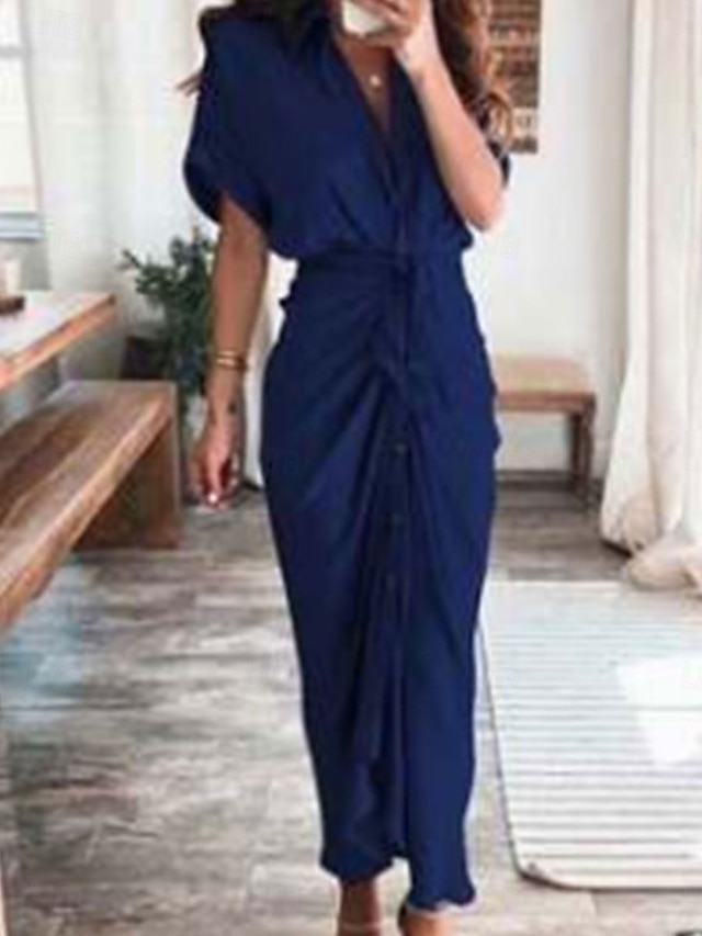 🔥💯Women's Maxi Dress Wrap Dress Bodycon Dress Puff Sleeve Dress Party Birthday Party Birthday Regular Fit Graphic Short Sleeve V Neck Black Champagne Sky Blue Orange Summer