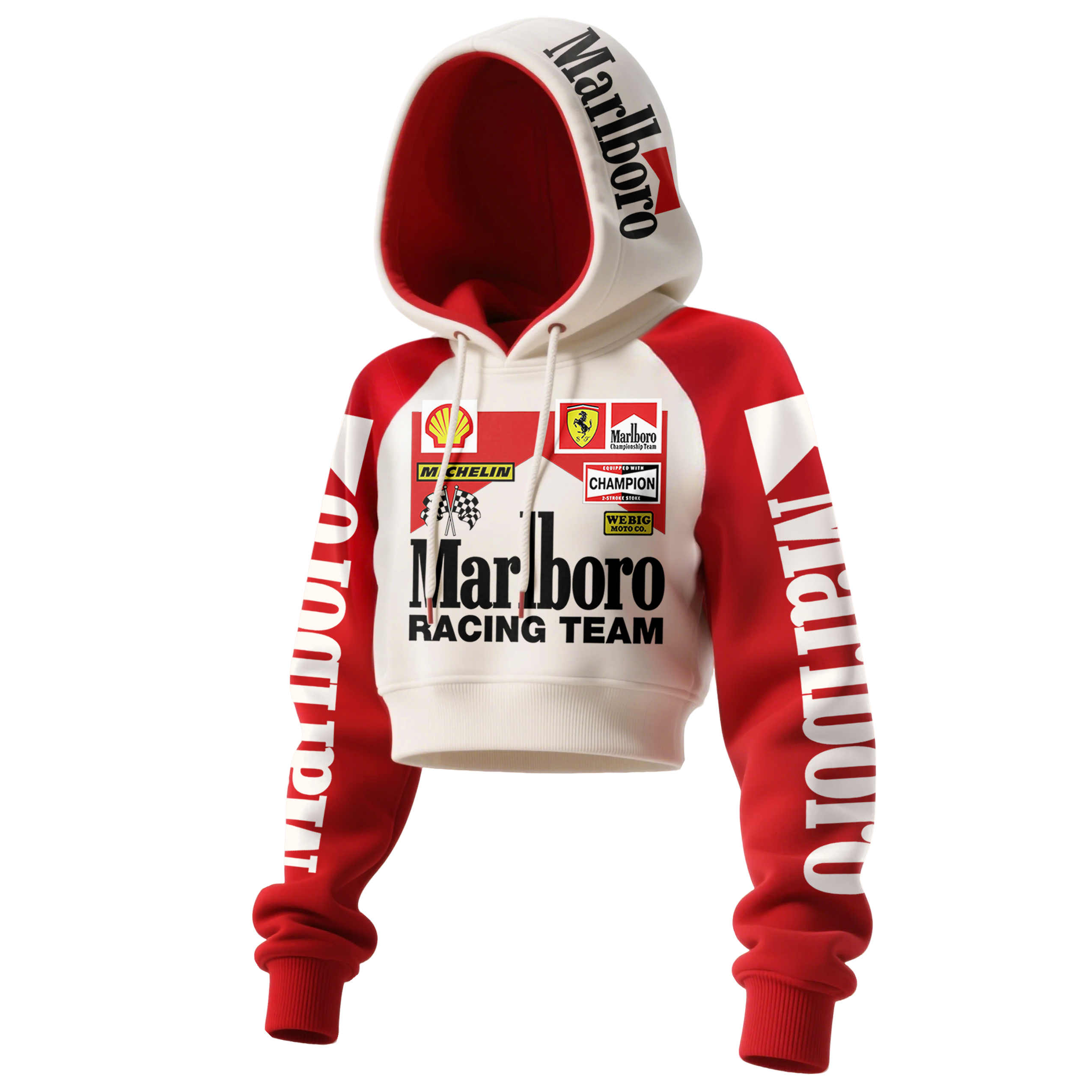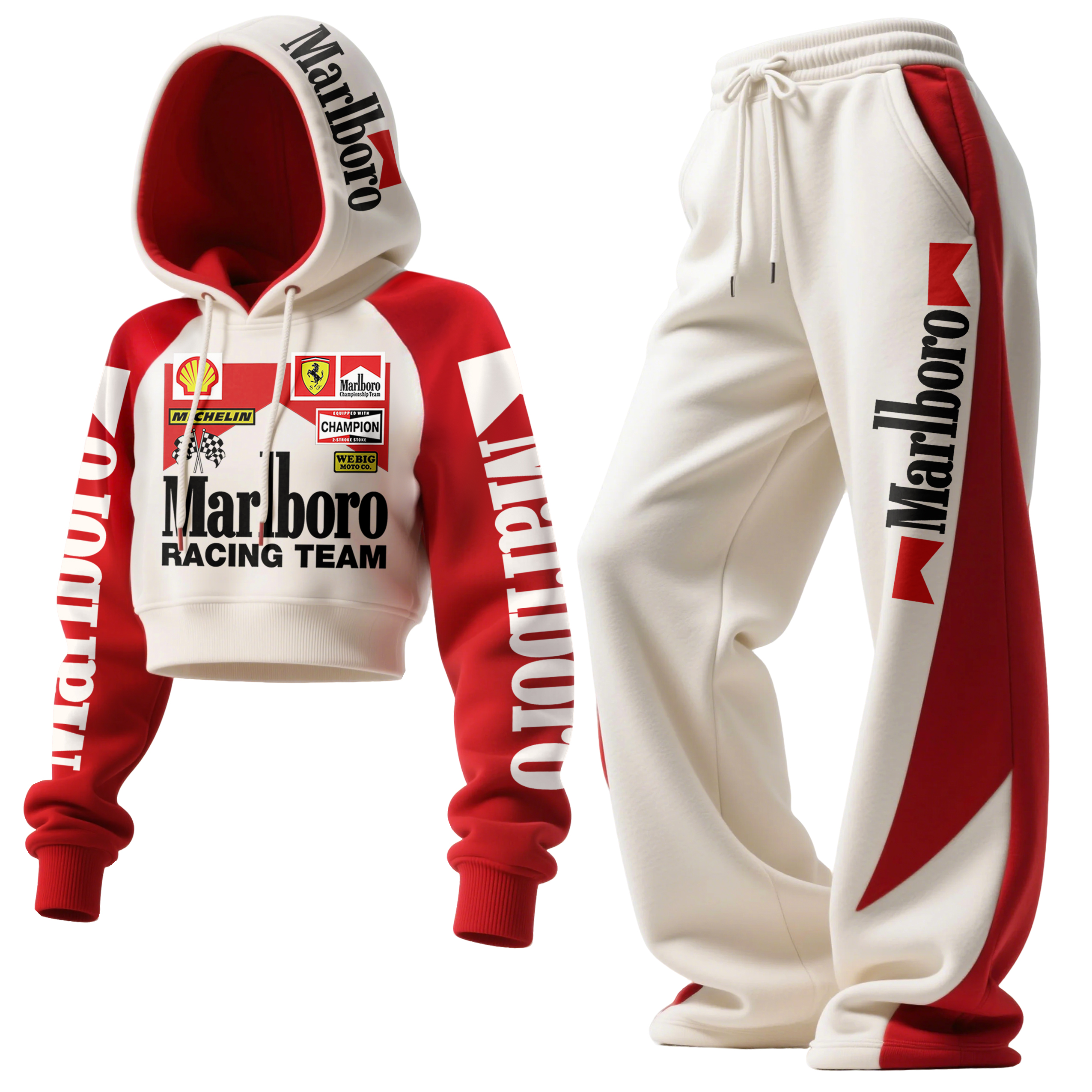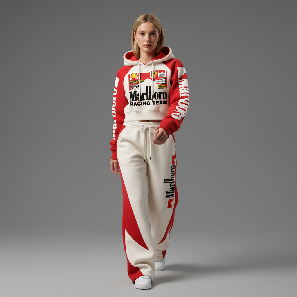 Women's Street Style Casual Racing-Style Printed Suit: Short Hooded Sweatshirt + Wide-Leg Sweatpants